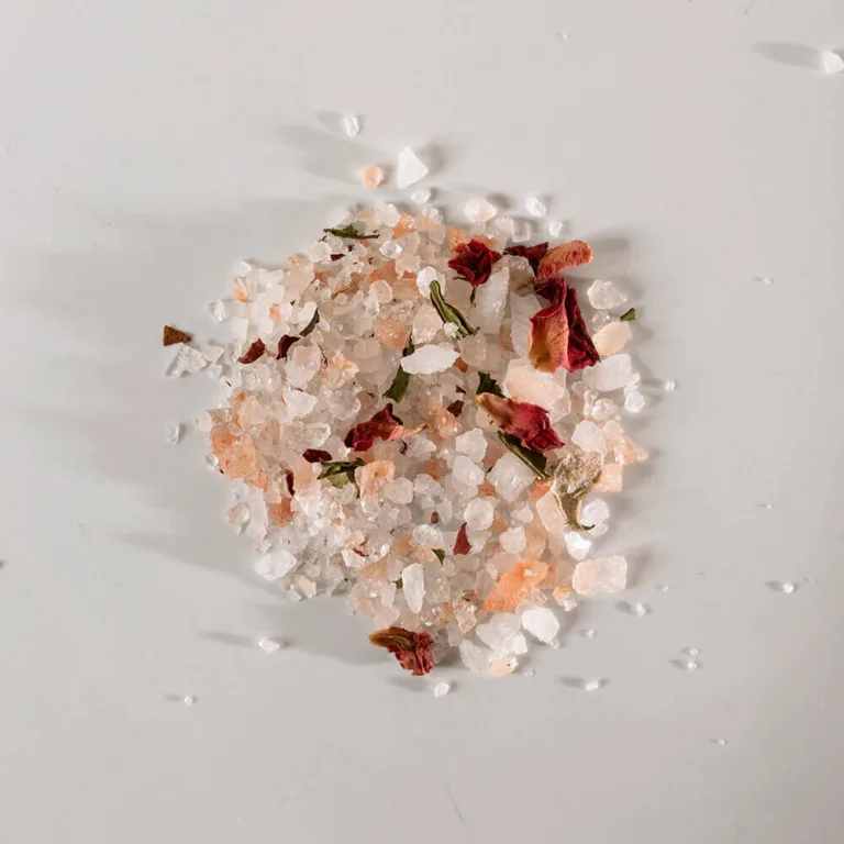 Kompletní složení: Himalájská sůl, mořská sůl, lístky konopí, květy růže, růžová silice.
